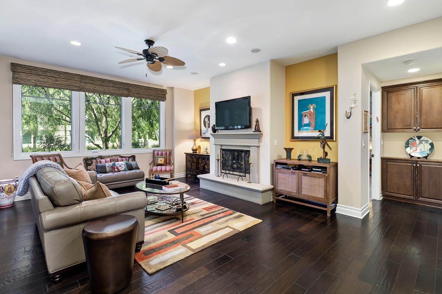 Spacious single level 3-bedroom home in one of the premier buildings in Playa Vista, The Dorian. Inviting and elegant, this home’s orientation looks onto a picturesque & relaxing parkway. The floorplan flows from the entry into the dining room & living room featuring distressed wood floors throughout. LR has a fireplace & access to the patio. Large chef’s kitchen has granite counter tops w/a tile backsplash, s/s appliances, wine fridge, breakfast bar & opens to the den/family room. Luxurious Master suite is separate from the other 2 bedrooms & has a large spa-like bath w/ soaking tub, huge shower, & walk-in closet. This first floor unit is located off the building atrium offering a clubhouse, BBQ dining and fireplace lounge areas, perfect for outdoor entertaining and social distancing, as needed. Enjoy the resort like grounds of Playa Vista w/ 2 pools, multiple parks, and abundant shopping/dining. Side by side parking, dual zone HVAC, extra storage also included.